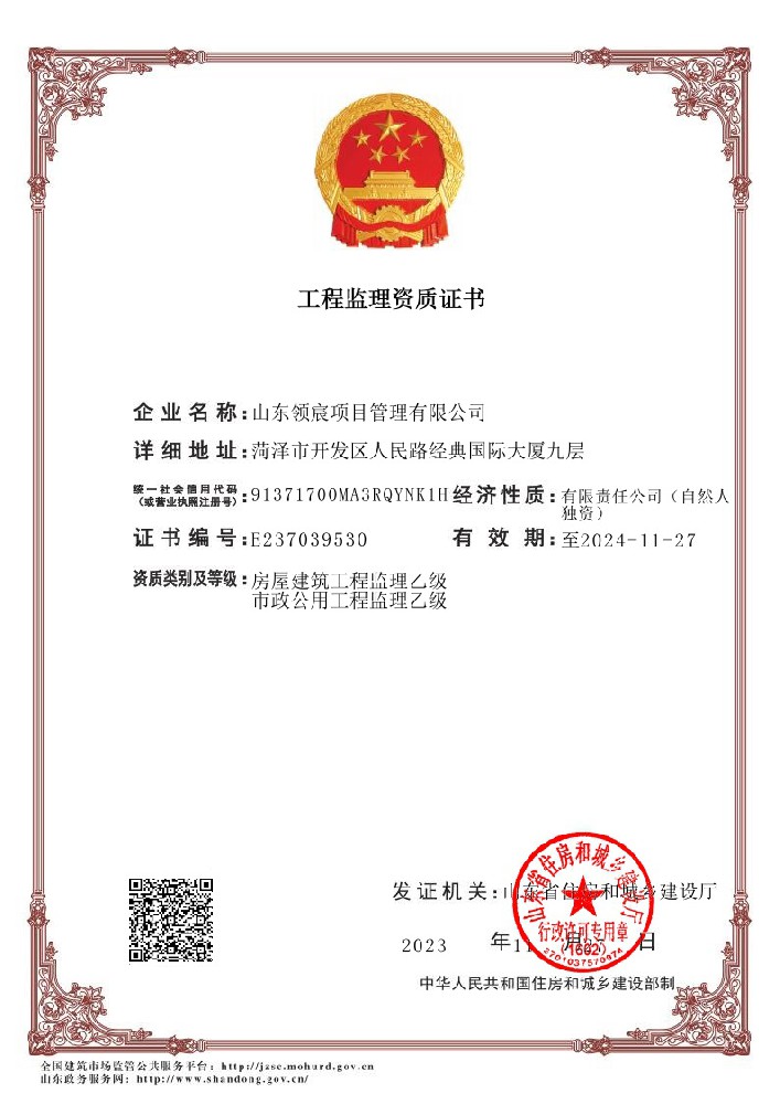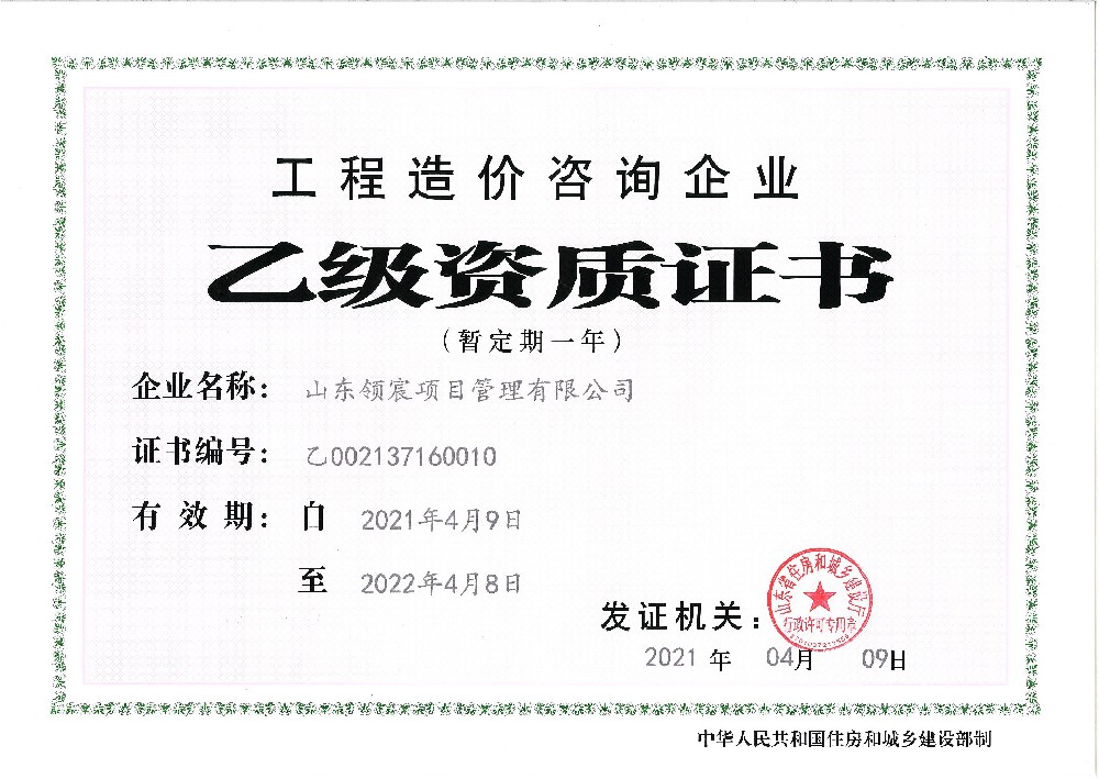 山東領(lǐng)宸項目管理有限公司是一家以全過程工程咨詢?yōu)楹诵牡淖稍兎?wù)公司,本公司現(xiàn)具備工程造價咨詢乙級資質(zhì),房屋建筑工程、市政工程監(jiān)理乙級資質(zhì)和招標(biāo)代理備案。公司擁有專業(yè)的工作團隊及豐富的行業(yè)經(jīng)驗,在行業(yè)領(lǐng)域內(nèi)具有雄厚的實力,企業(yè)管理人員擁有行業(yè)20年以上的資深行業(yè)工作經(jīng)驗。公司現(xiàn)有專業(yè)技術(shù)人員50余人,具有一級注冊造價工程師、注冊監(jiān)理工程師、一級注冊建造師、二級注冊建造師、招標(biāo)師等工程類國家注冊執(zhí)業(yè)資格證書人員合計30余人以及高級工程師3人,持證上崗率達到90%......